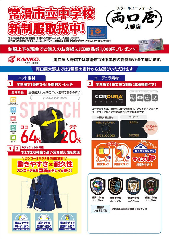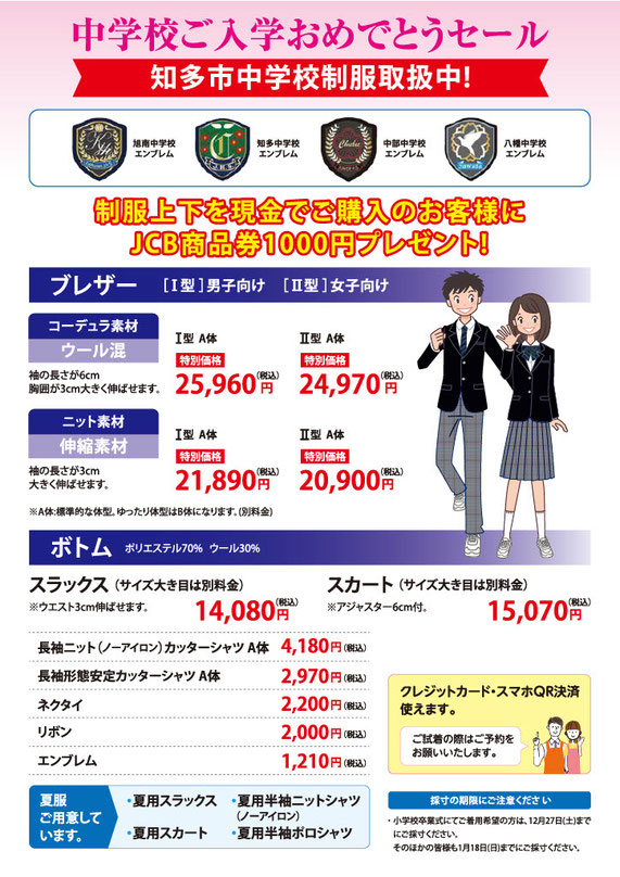 ≪2026年度 知多市・常滑市立中学校制服ご予約受付中!≫